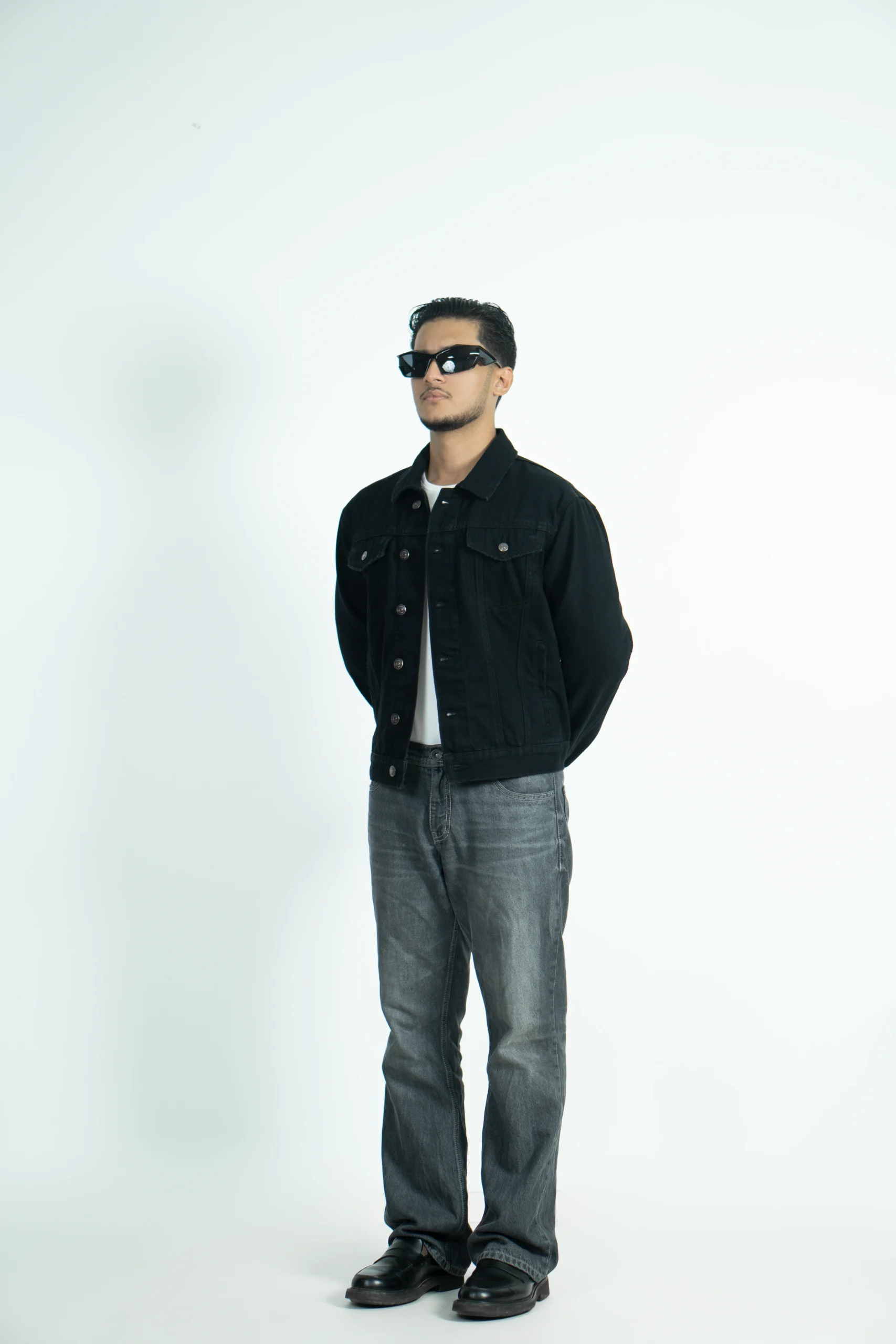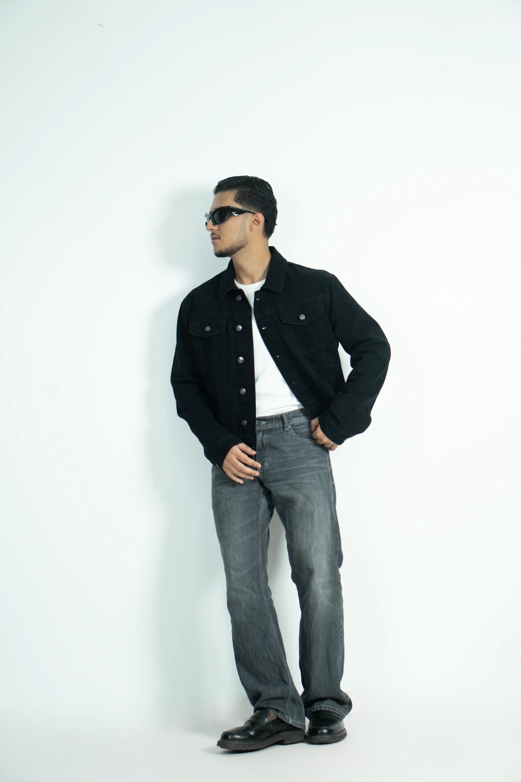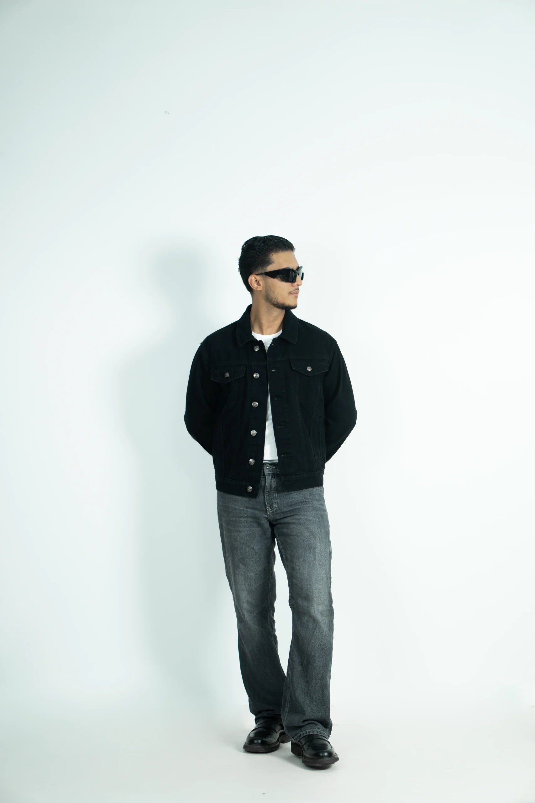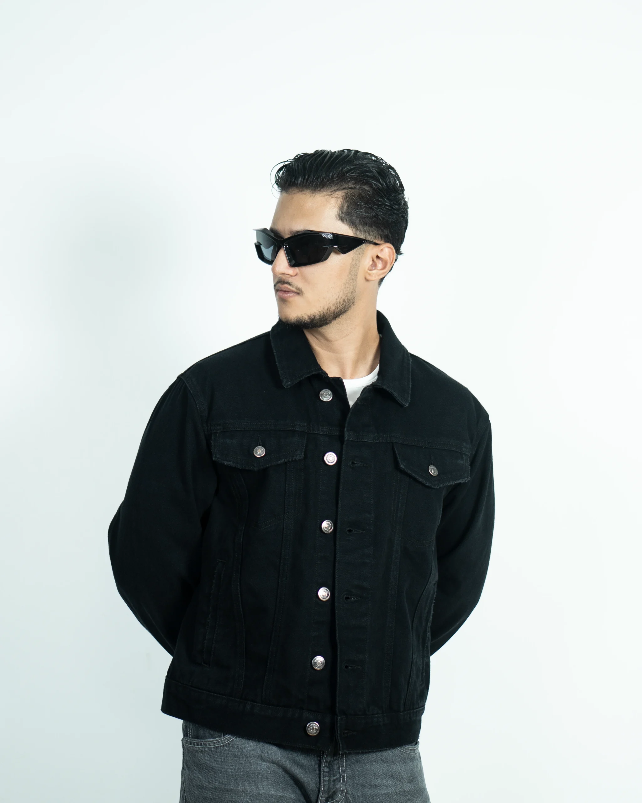 A classic denim black jacket style holds a strong place in fashion for its versatility, timeless appeal, and effortless cool factor. This denim fitted in the shoulders, snug in the body, hits at the hips.